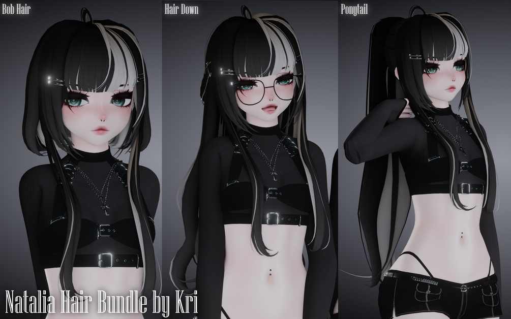 ★·.· All Rigged, Two materials (Hair, metal), 3 different hair meshes, Bob Hair (16,108 tris), Ponytail (14,030 tris), Long Hair (24,320 tris)